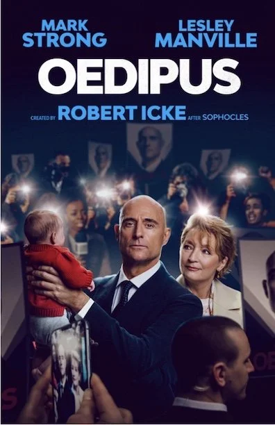 I’d say the same of Icke’s bang-up-to-date Oedipus, and point out that it also becomes (not unlike 1984) an intense parable about honesty, truth and cover-ups in public life. Mark Strong plays Oedipus, powerfully (and sometimes overpoweringly) as an elected leader in a country that’s (vaguely) British, during the final 2-hour countdown to a result on voting day. He’s a progressive and reformist candidate in a tetchy relationship with his campaign’s Number Two – and there are echoes here of Tony Blair and Gordon Brown.