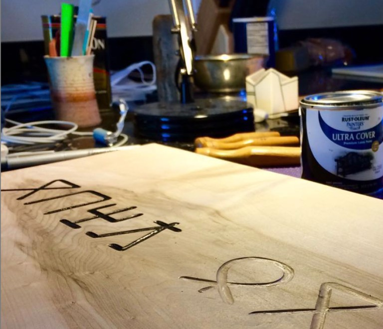 Brookes has long been a travel writer, so he has encountered many minority and marginalized languages in both their oral and written forms. But his work helping to preserve their alphabets has made him turn to another, quite different skillset – that of carving in wood. He raises funds for his alphabet-rescue project by making and selling examples of the lettering that he’s painstakingly chiseled into hunks or boards of Vermont ‘Quilted’ Maple and other graceful timbers.